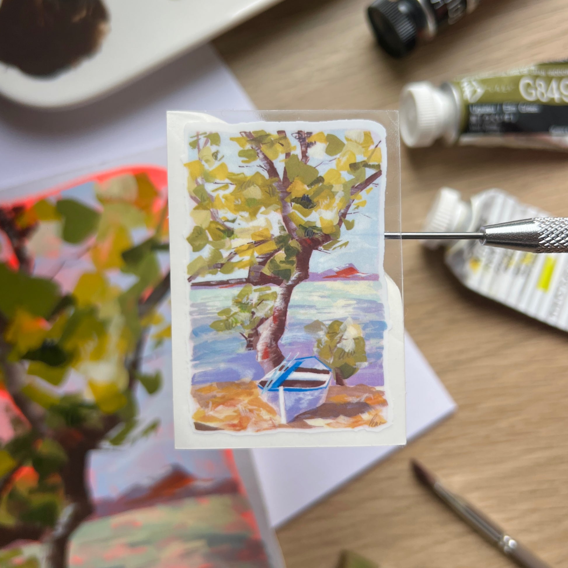 Illustration imprimée sur papier sticker vinyle brillant transparent