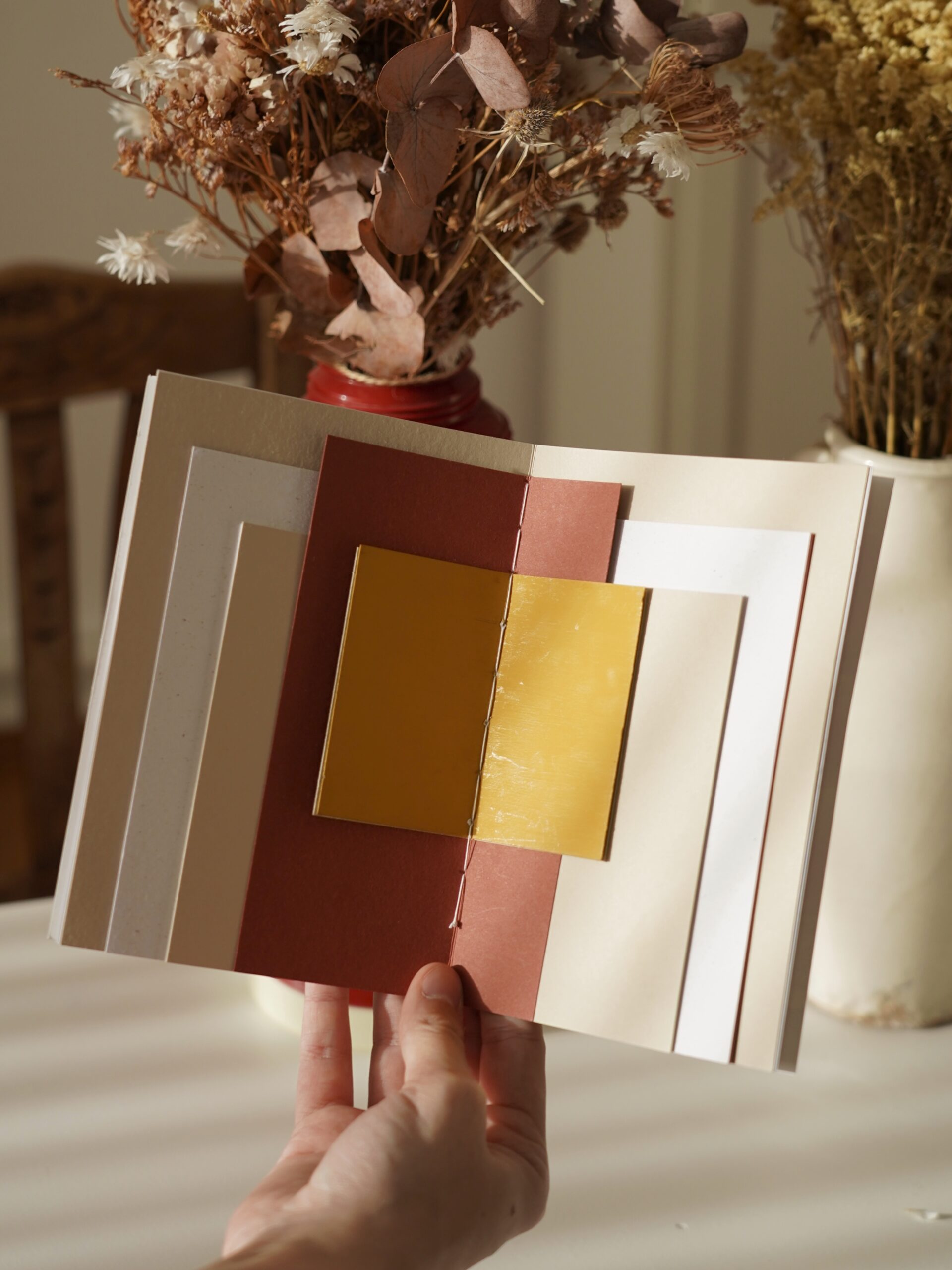 Dimensions : 17 x 12 cm. Papier intérieurs Paint’on multi technique (mélange avec du 250g blanc, 250g naturel, 250g terra, 250g misca). Différentes tailles et couleurs de papiers dans un seul carnet, l’endroit parfait pour expérimenter !