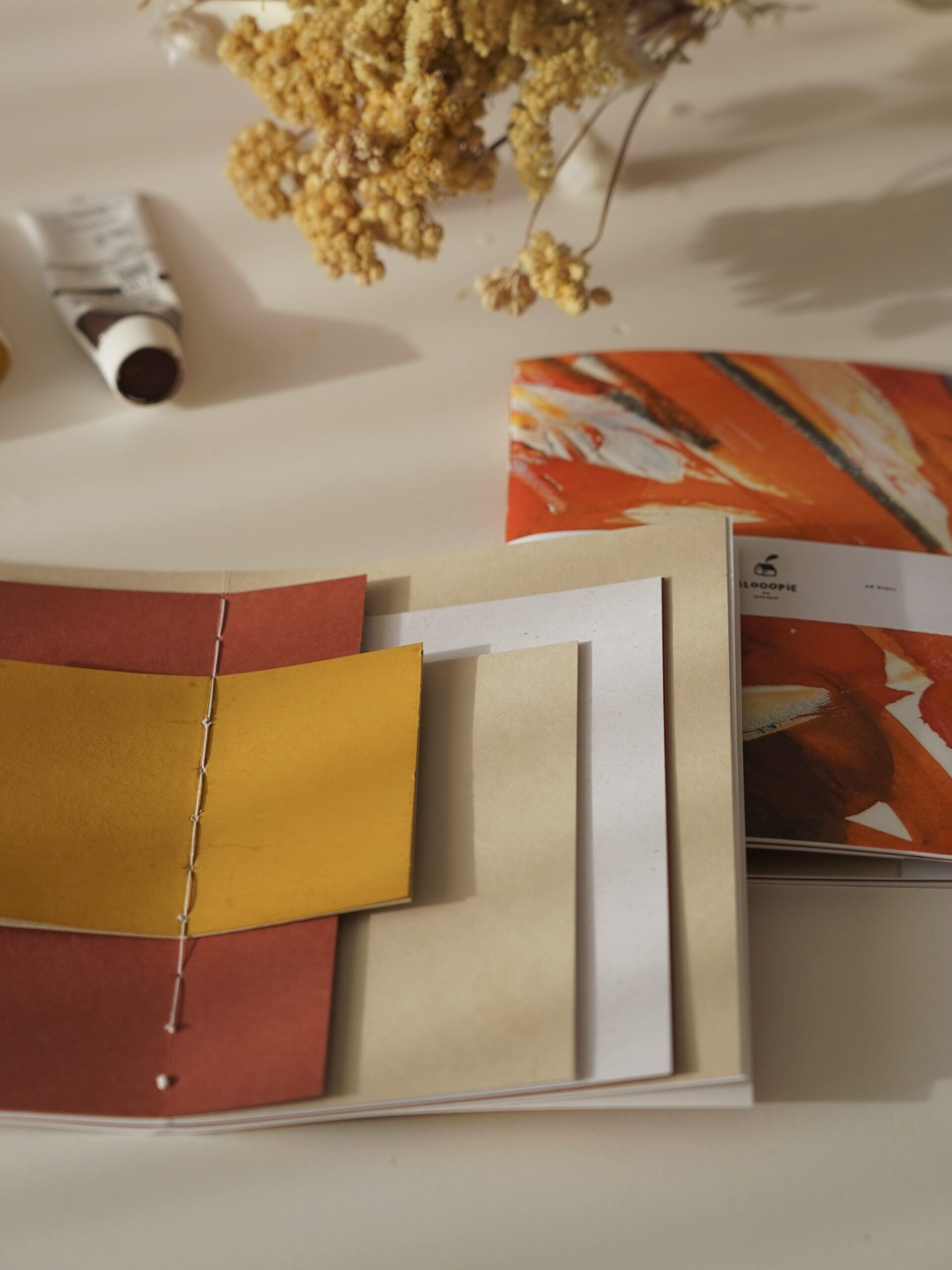 J’ai toujours rêvé de créer dans des carnets un peu originaux et j’ai toujours trouvé ça fun d’expérimenter sur des tailles différentes et des couleurs différentes et je me suis dis : »pourquoi pas créer le mien ? ».