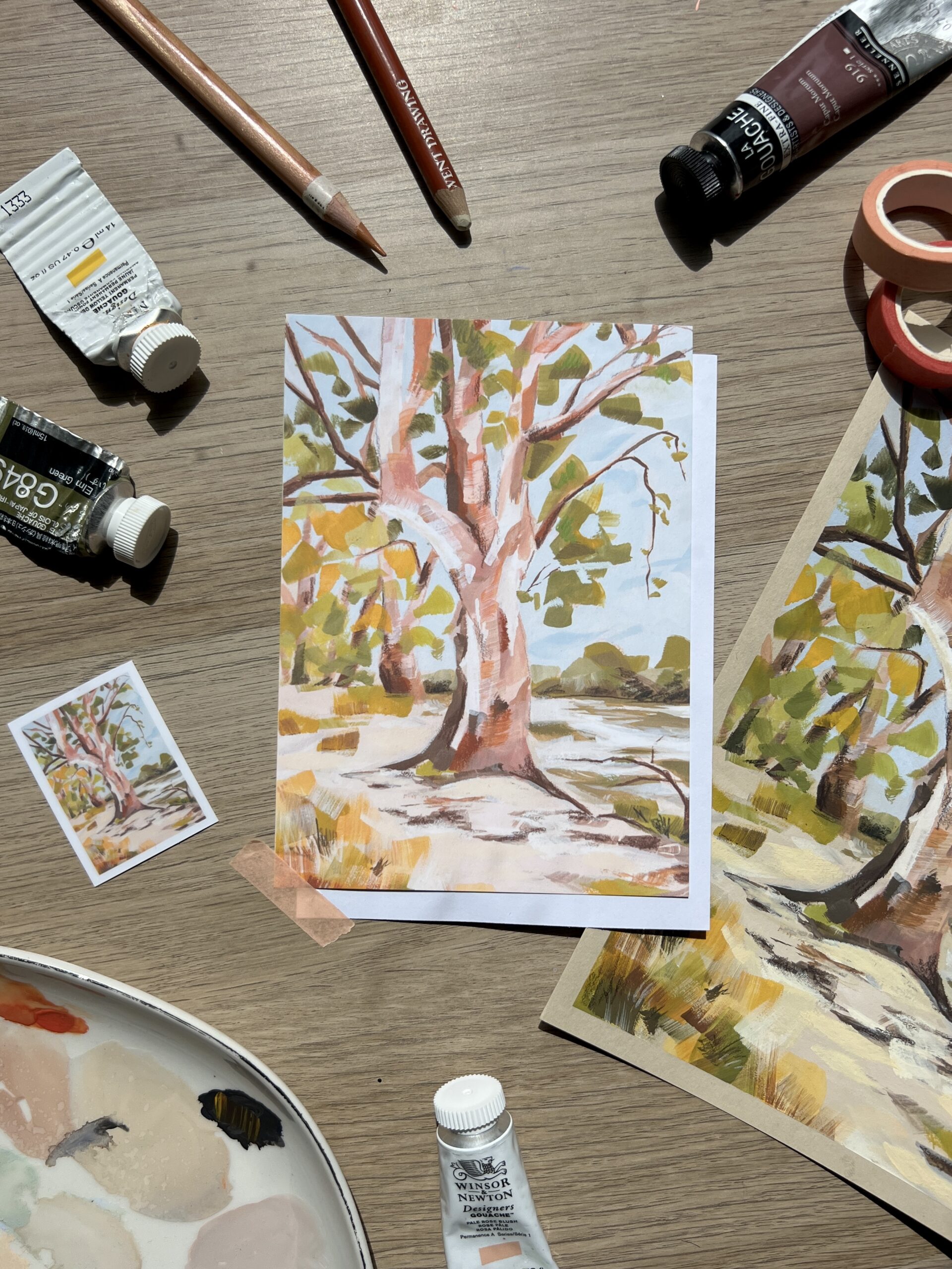 En début 2025, j’ai eu un artblock. Et je n’arrivais plus à peindre. Alors j’ai ressorti mes couleurs terres préférées et mon médium préféré l’acryla gouache. Je me suis amusée, beaucoup amusée et ça a donné cette illustration que j’adore. C’est la toute première peinture de 2025 dont j’ai été contente !